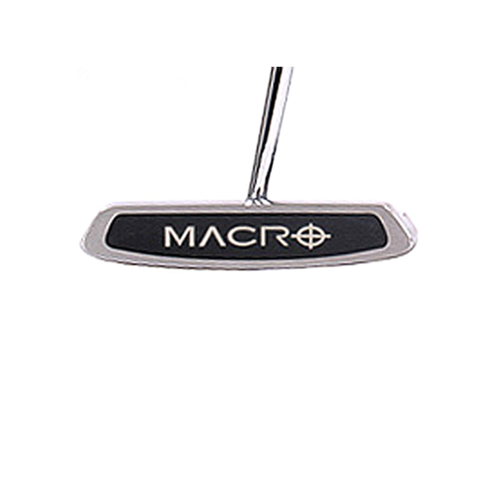 303 Stainless Steel with black aluminium insert, milled 3.5 x1 “ face / 3 perimeter, adjustable , barrel-shaped weights / mirrored low-no friction sole/ Top-Notch™ alignment-aids on head and grip top / center shafted with no-bend, no-flex SS non-stepped shaft equipped with a patented offset, reducing-oval shaped, completely face-balancing 14” Macro® putter grip designed to play firmly in the lifelines of your palms to make the straight back…. straight through stroke that stays square both to the ball and the line to the target. Head weight 370 grams · Lie angle 74° · Loft 2°
